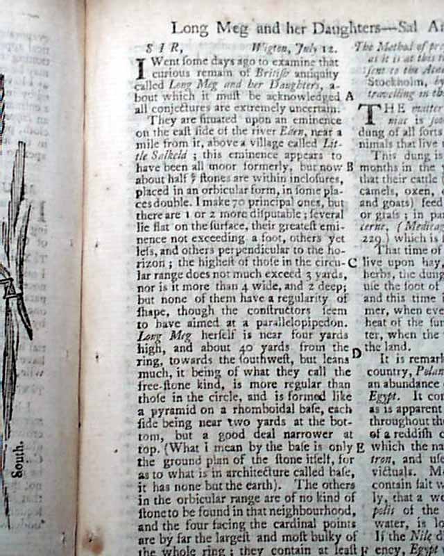 Also included in this issue is a full page print: "Long Meg and Her Daughters, a remarkable ancient fort...", with a corresponding article by George Smith signed in block type: G.S.