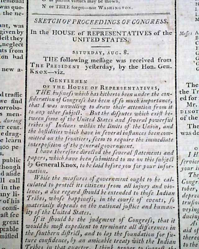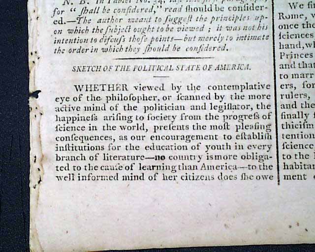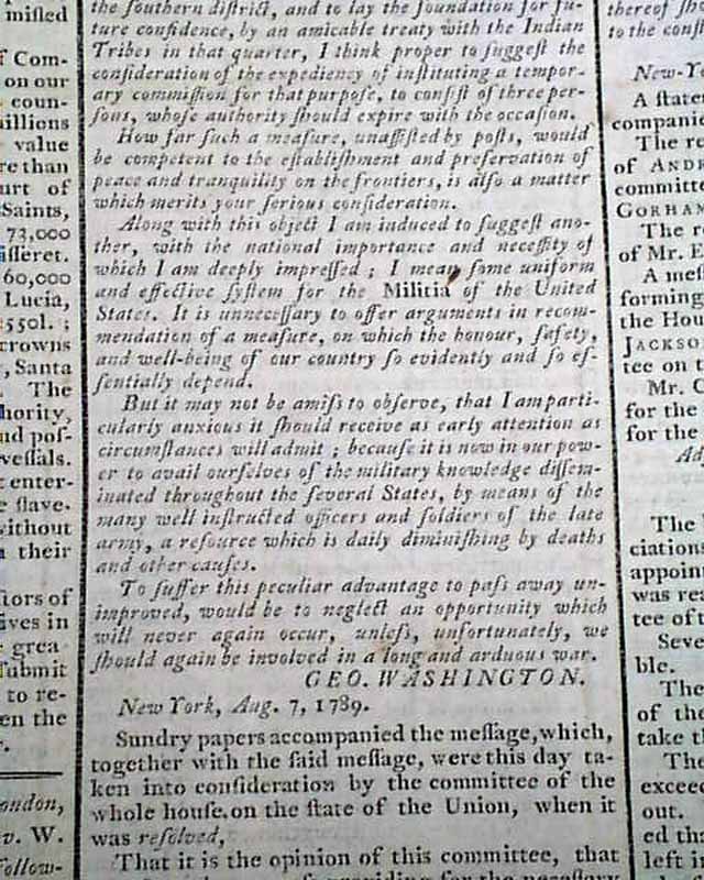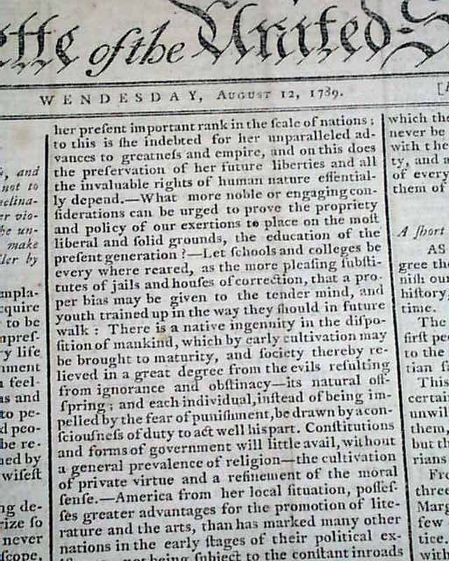 GAZETTE OF THE UNITED STATES, New York, Aug. 12, 1789  Much of the front page is taken up with: "Sketch of the Political State of America" which has interesting comments from the beginning months of the new federal government.