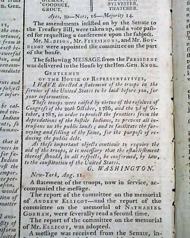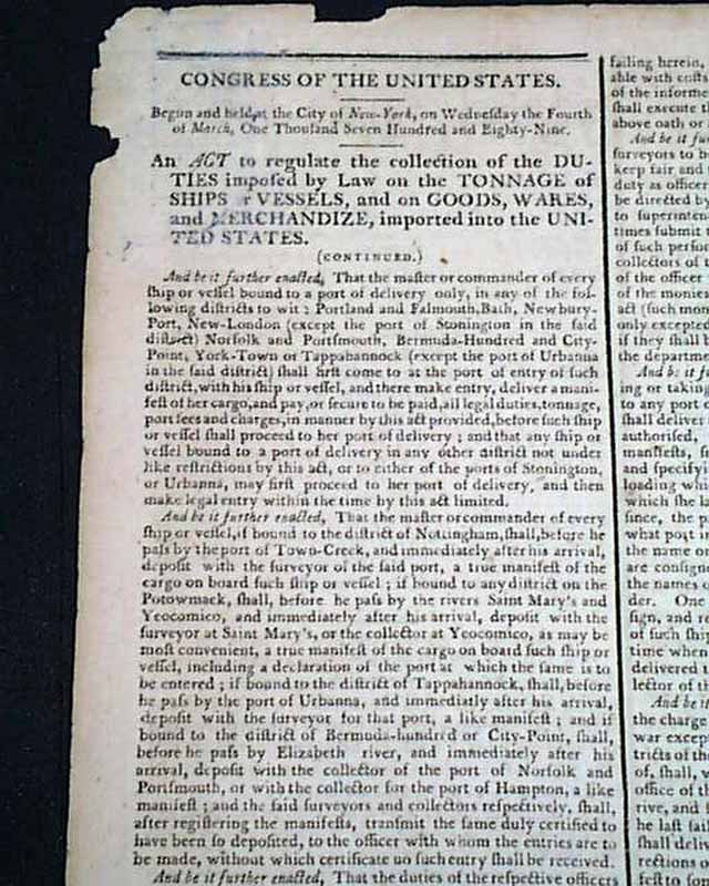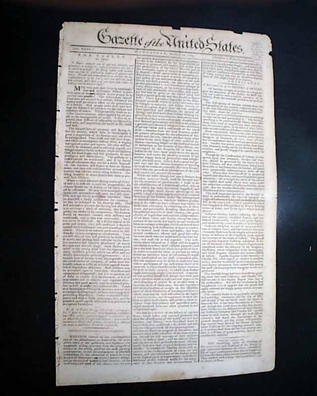 Considered by many as the most significant newspaper of the 18th century, particularly during this, the formative year of the new federal government, as the Gazette was the mouthpiece of all matters political. Most pronouncements from Congress & the President were printed first in this newspaper.