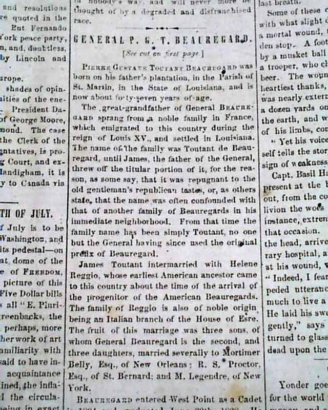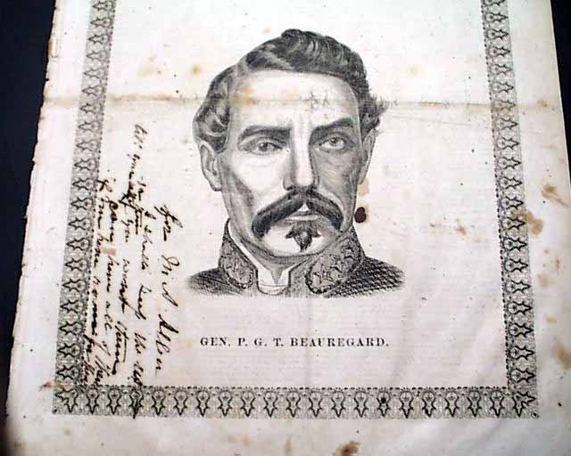 The front page is entirely taken up with a large portrait of: "Gen. P.G.T. Beauregard" with a nice biography of him found on page 4.