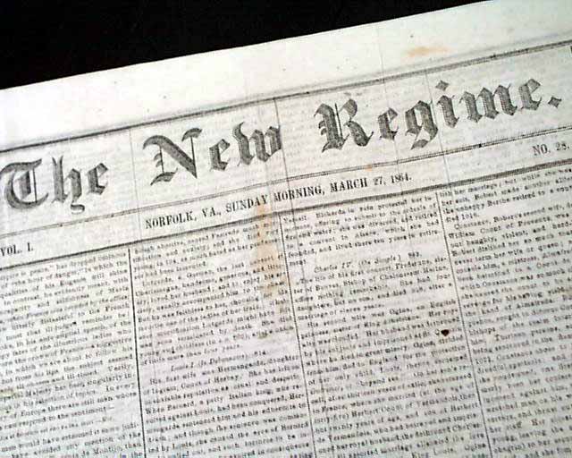 THE NEW REGIME, Norfolk, Virginia, March 27, 1864