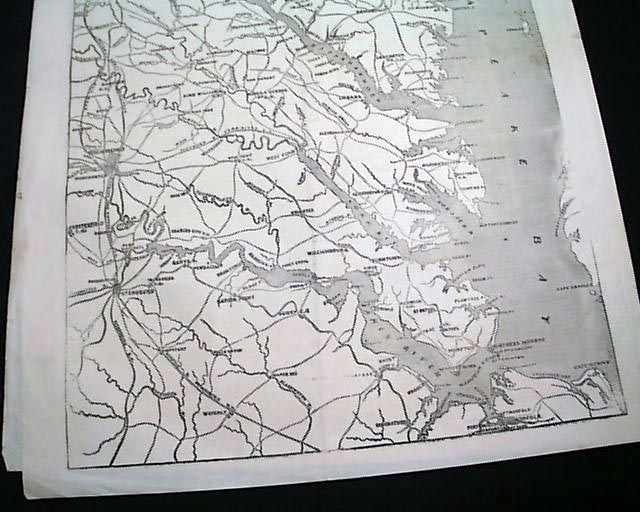The entirety of page 4 is taken up with a huge Civil War map headed: "TOPOGRAPHICAL MAP OF VIRGINIA - From Mathias Point and Aquia Creek to Fort Monroe and Norfolk, Including Richmond." showing much details.