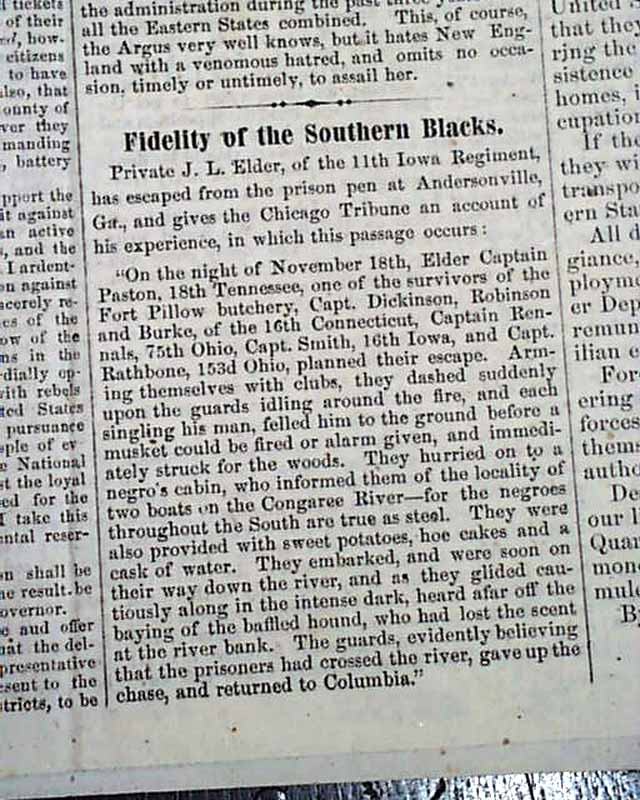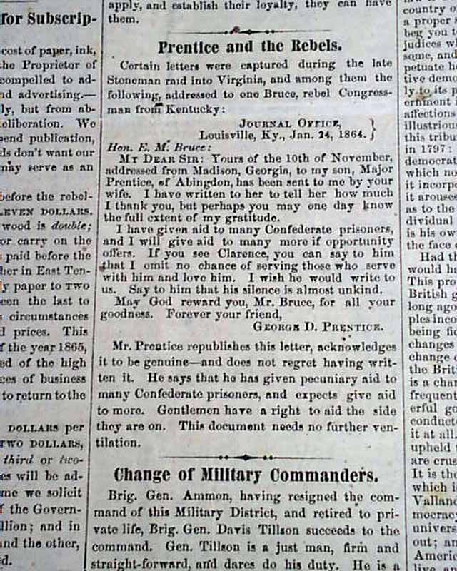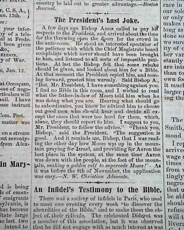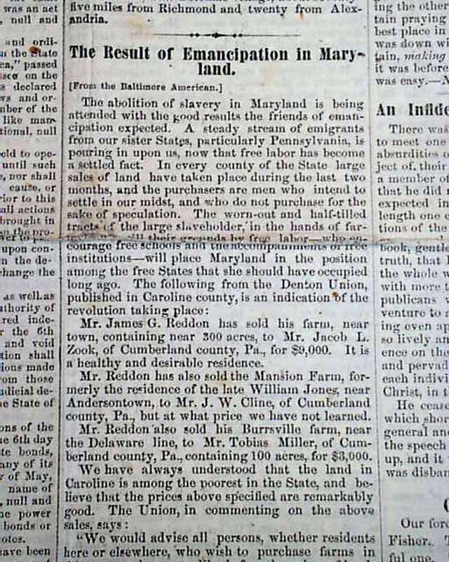 Among the great wealth of fascinating articles are: "Our Position Defined" "Amendments to the Constitution" "The Result of Emancipation in Maryland" "Capture of Fort Fisher!" "Arming the Negroes" "The President's Last Joke" "Prentice & the Rebels" "Richmond Must Fall!" and much more.