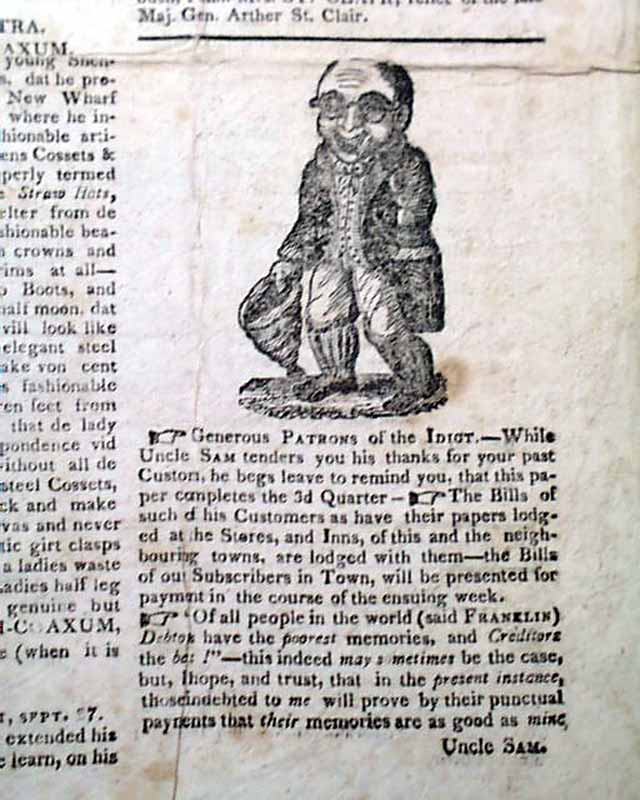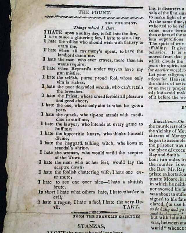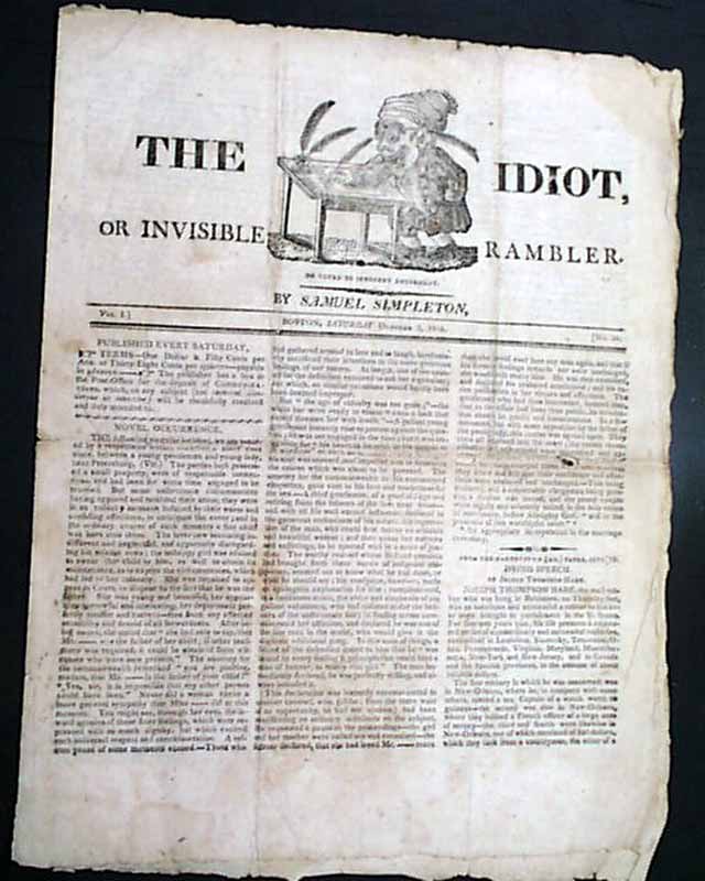 THE IDIOT, OR INVISIBLE RAMBLER, Boston, Oct. 3, 1818  A quite rare issue which lasted but 52 issues, published "By Samuel Simpleton" and is "Devoted to Innocent Amusement" as noted in the masthead.
