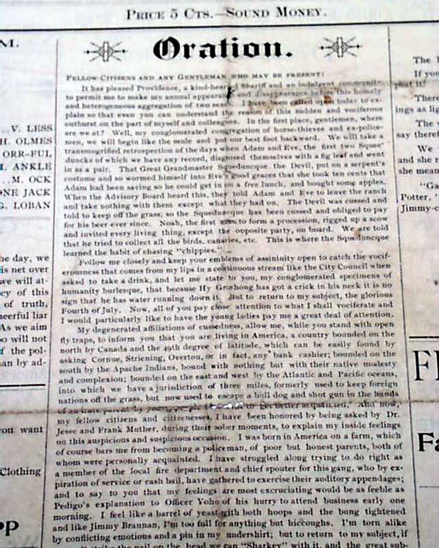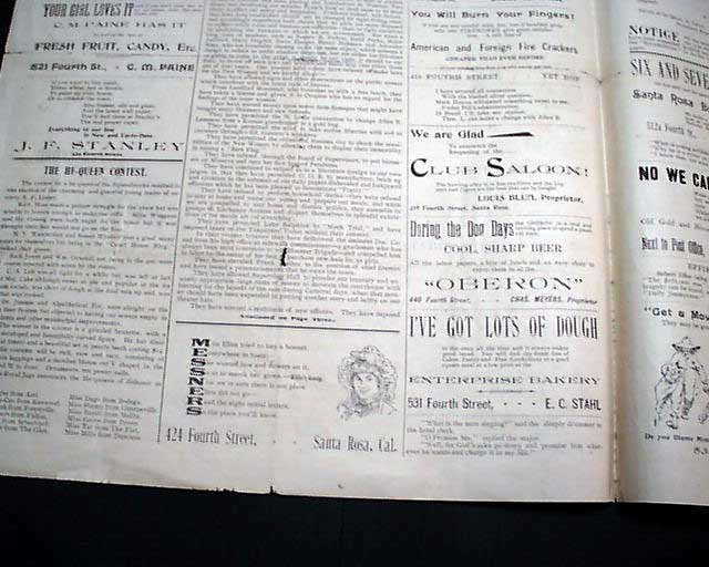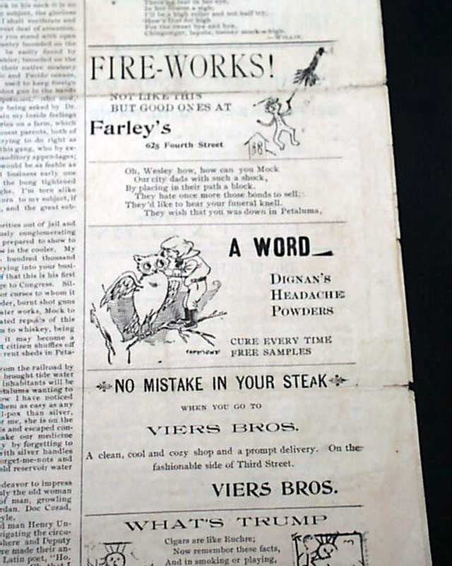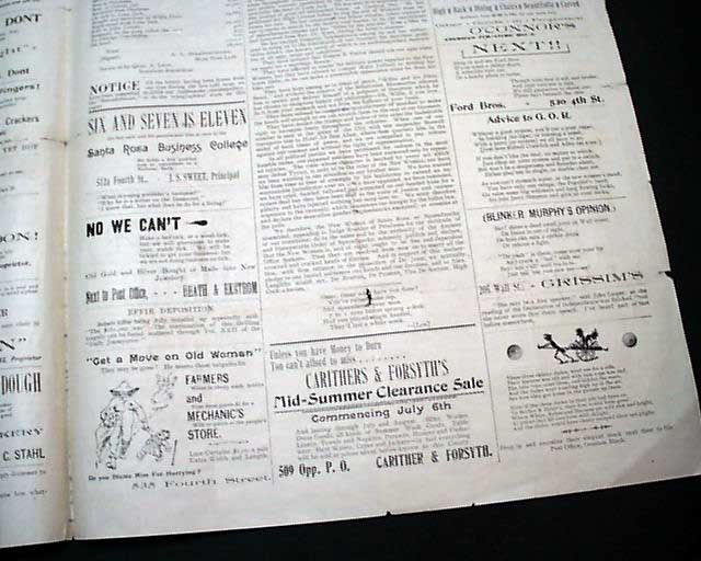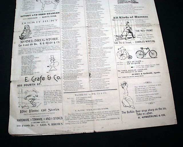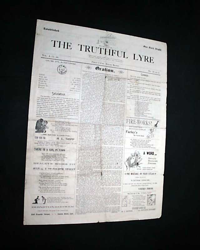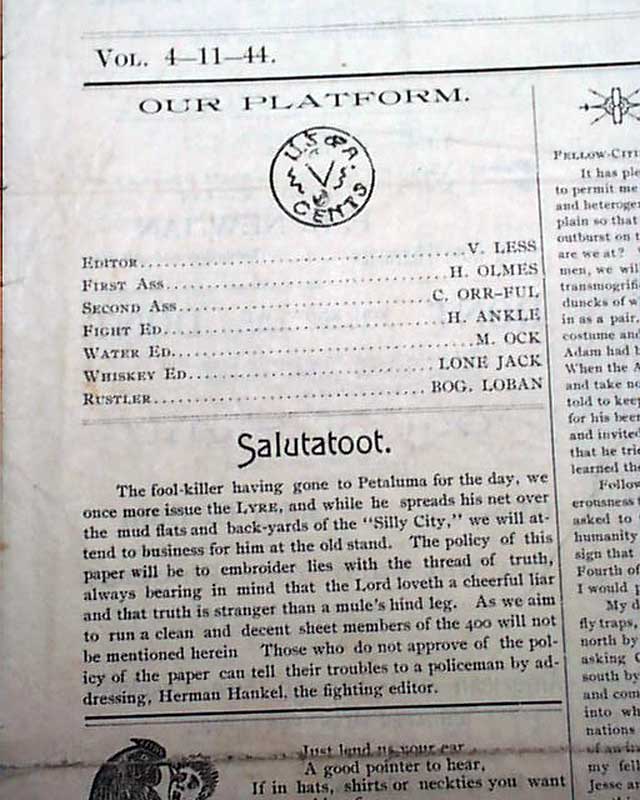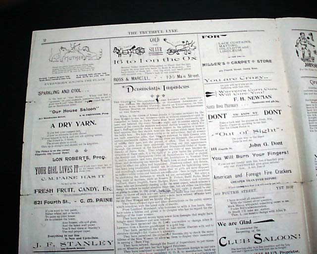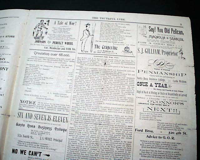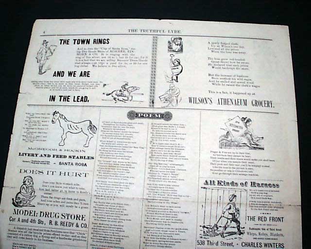 THE TRUTHFUL LYRE, (Santa Rosa, California), approx. 1896 A most unusual newspaper, comedy being its theme. Nothing in the issue can be believed; it is satirical from beginning to end, including the ads.