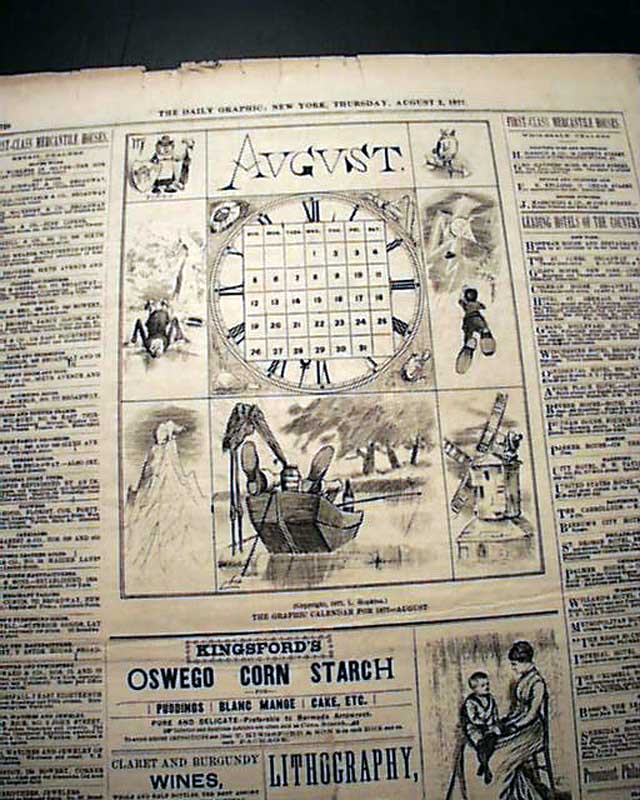 THE DAILY GRAPHIC, New York, Aug. 2, 1877 This was one of the very few daily, illustrated newspapers in the United States, prints dominating at least 3 of the 8 pages.