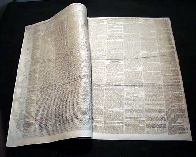 Eight pages, archivally rejoined at the spine, older archival strengthening at the outer margins of pages 2, 4, 6 & 8 affecting mostly ads. There is nothing affecting the Lincoln content. Otherwise in nice condition.