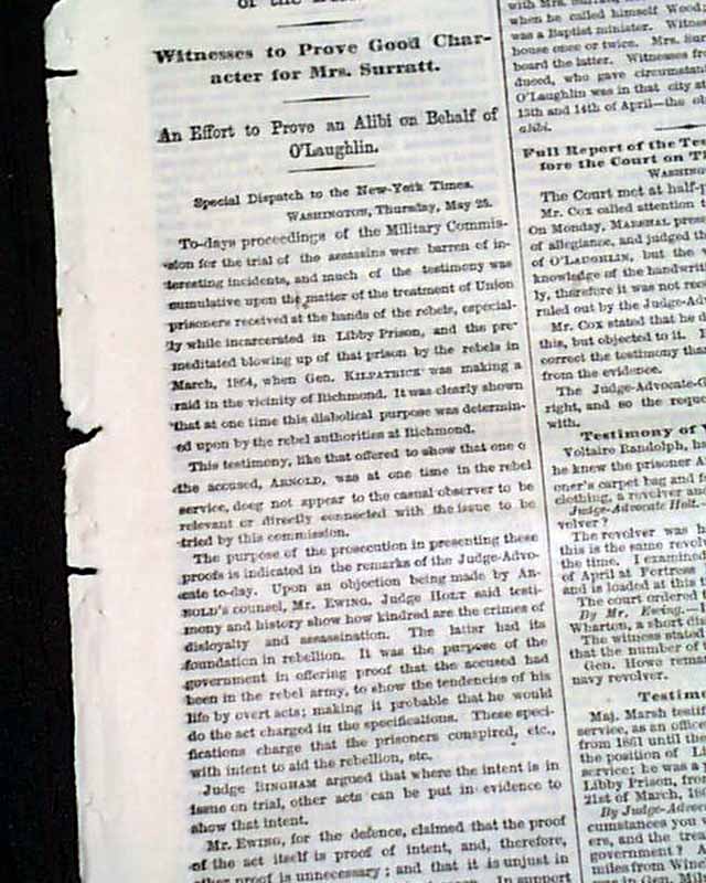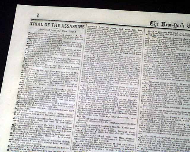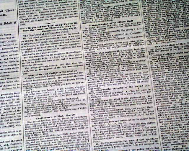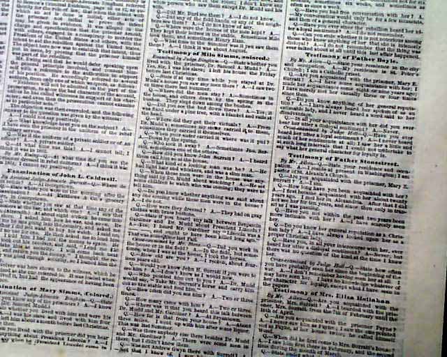 The entire front page and over half of the back page are taken up with very detailed and verbatim accounts of those called to give testimony in the trial of the Lincoln assassins.