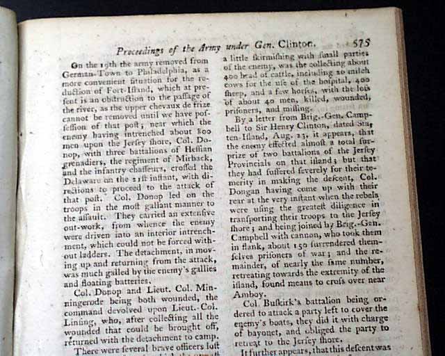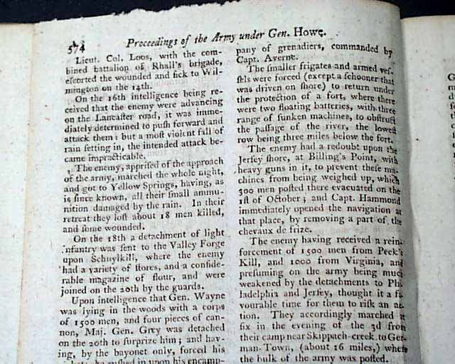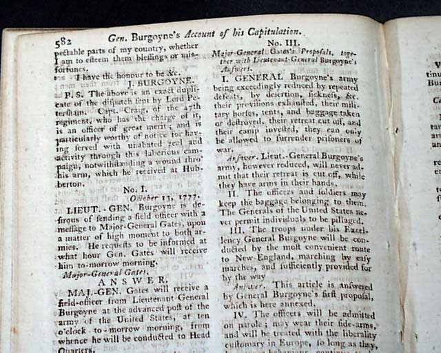 Among the headings covering the war are: "Proceedings of the Army Under Gen. Howe" and "Proceedings of the Army Under Gen. Clinton" which has fine reporting on the battles of Germantown and Brandywine; and "Proceedings of the Army under Gen. Burgoyne" and "Account of Gen. Lincoln's Attack on Ticonderoga".