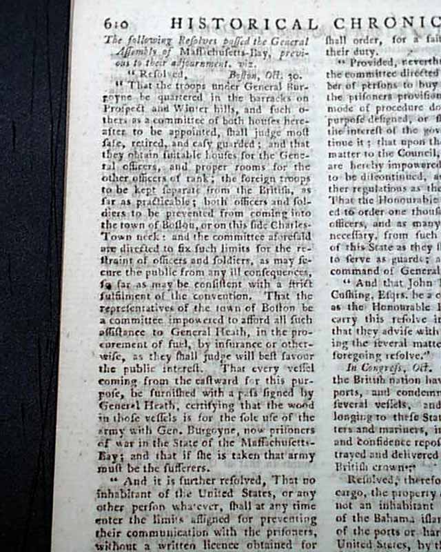This is one of the more historic issues of the Revolutionary War with a terrific amount of war reporting, not the least of which is a fine report on Burgoyne's Surrender at Saratoga.