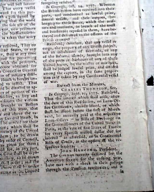 Near the back is yet another full page concerning the disposition of Burgoyne & his troops, as well as an extract of the minutes from Congress signed in type: John Hancock, President.
