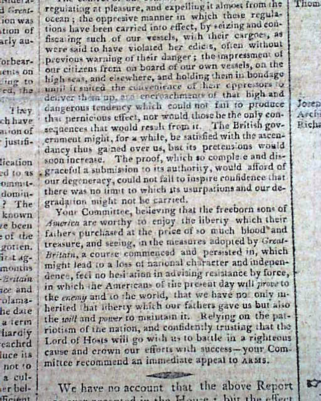 An historic issue on America's entry into what would become known as the War of 1812.