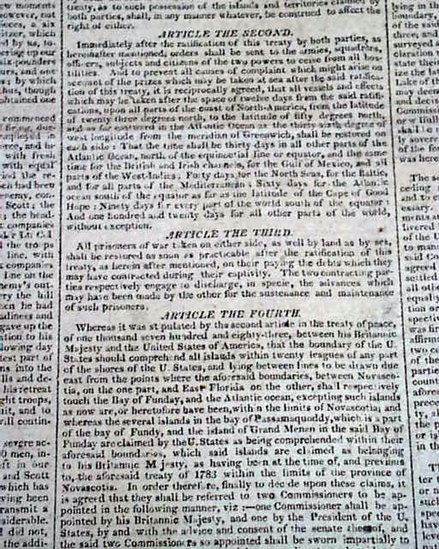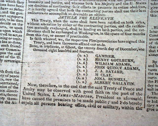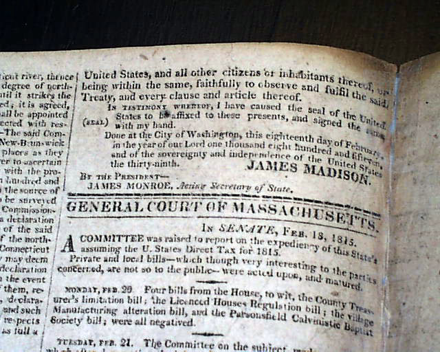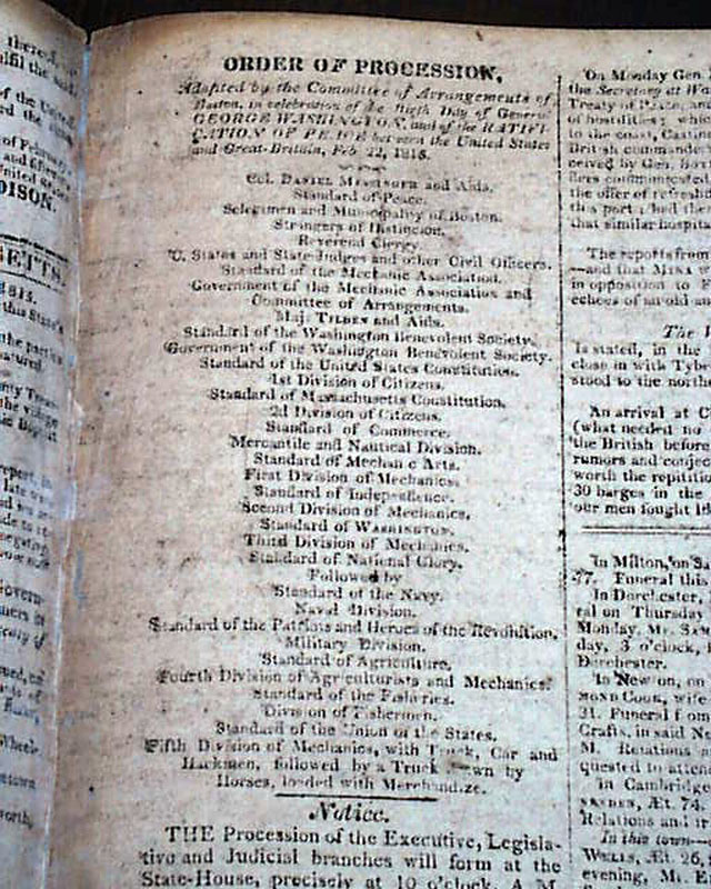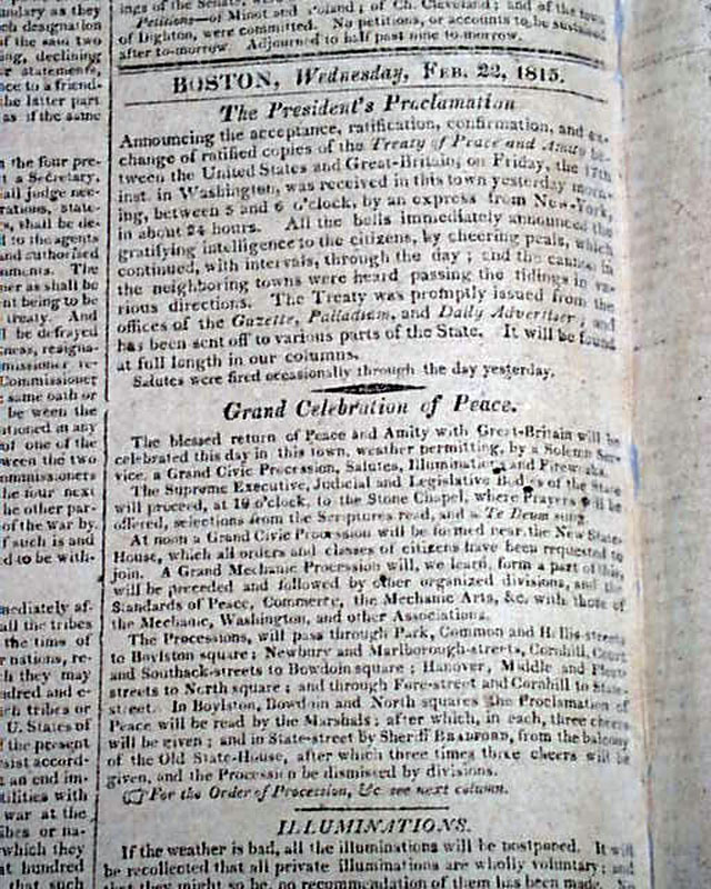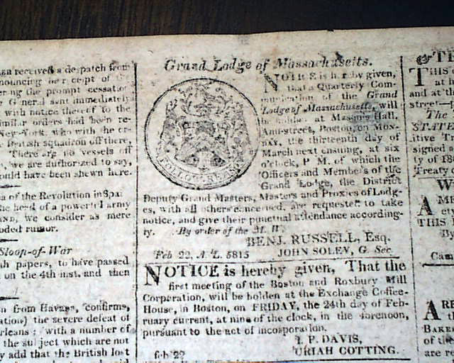 COLUMBIAN CENTINEL, Boston, Feb. 22, 1815