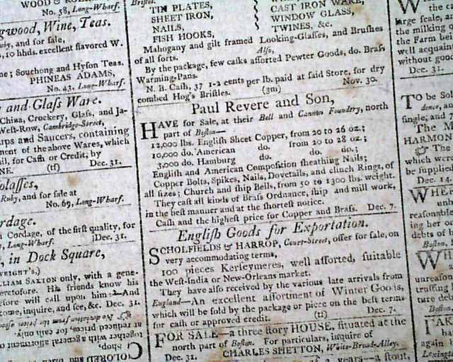 Also, the back page has an advertisement headed: "Paul Revere & Son" with details on their bell foundry business.