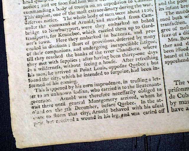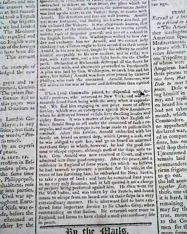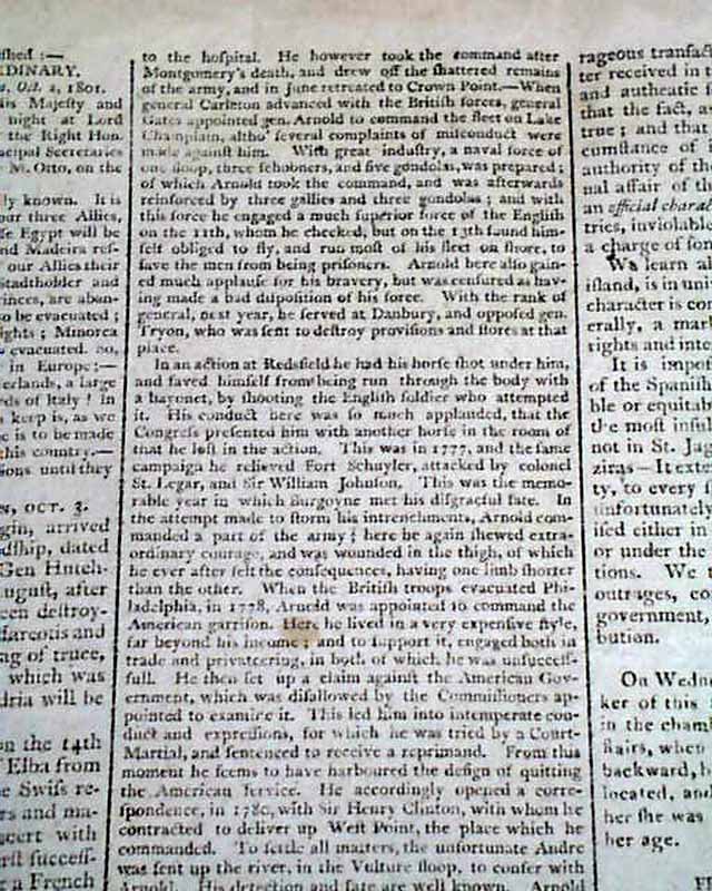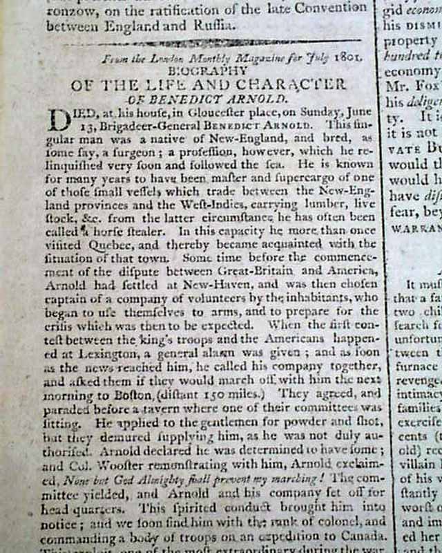 Also on page 2 is a nearly full-column report headed: "Biography Of The Life And Character of Benedict Arnold".
