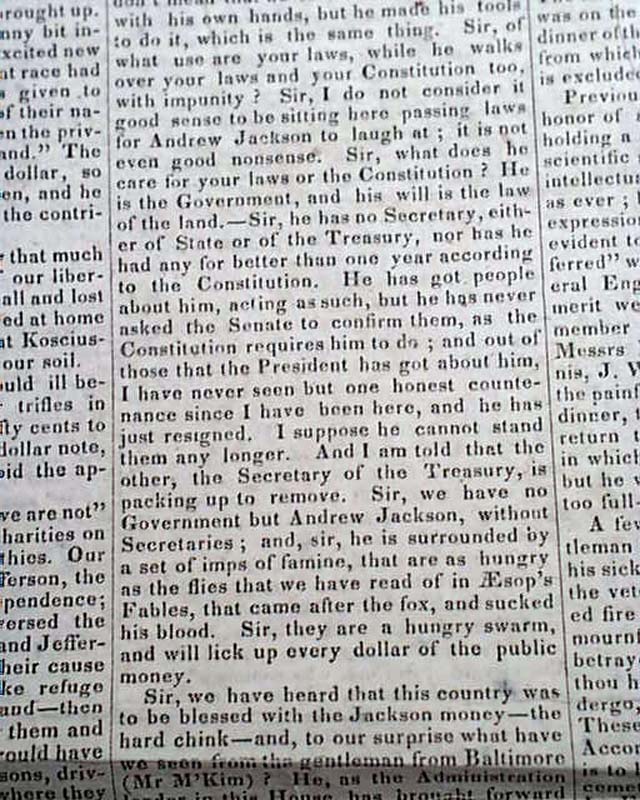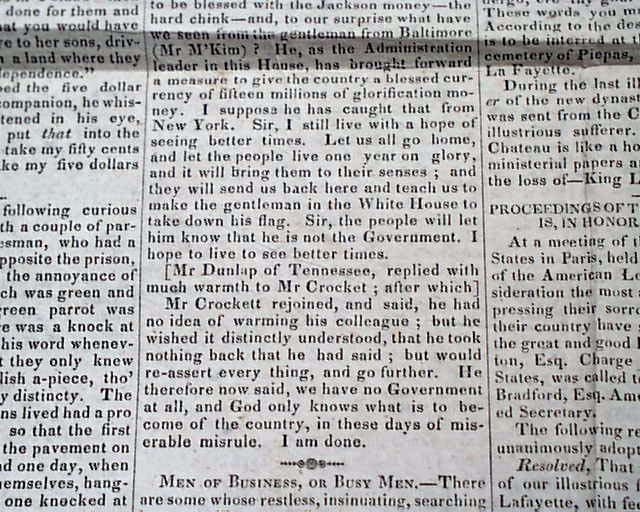 Page 2 has a lengthy report concerning Davy Crockett in Congress. Also, a report on the: "Funeral of Lafayette".