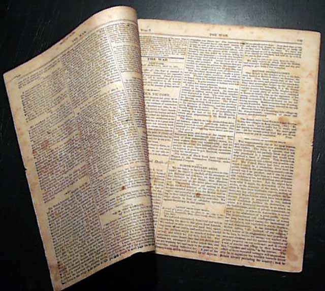 This is a fascinating, short-lived newspaper, having begun in 1812 with the exclusive purpose of reporting on the War of 1812 (hence the title). When the war ended, so did this newspaper.