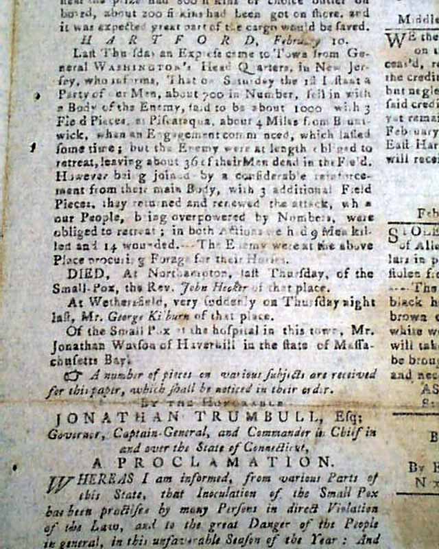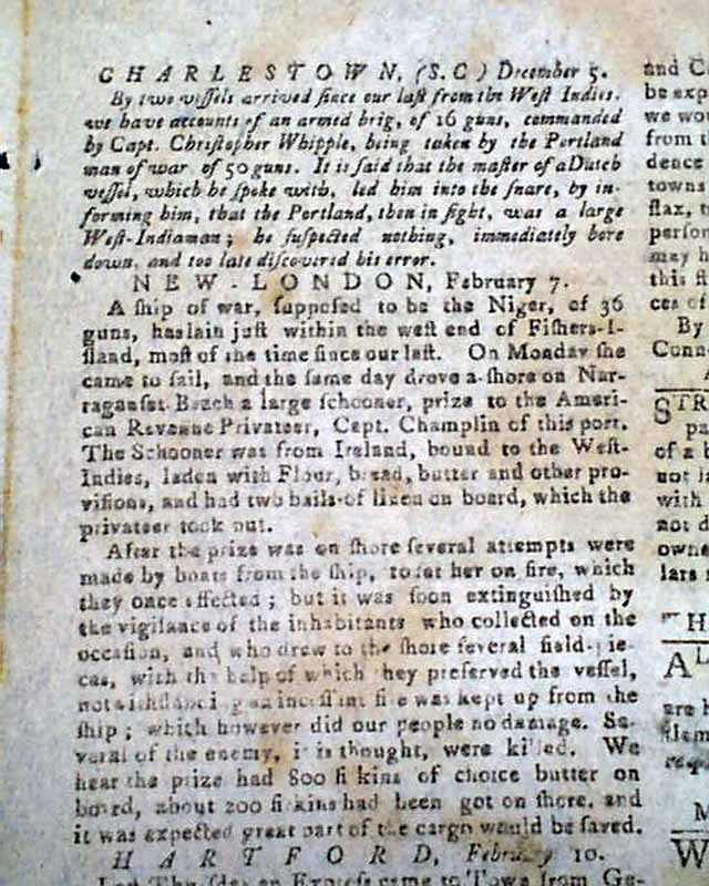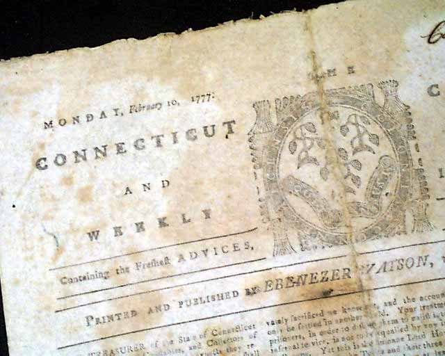 THE CONNECTICUT COURANT & WEEKLY INTELLIGENCER, Hartford, Feb. 10, 1777  Almost the entire front page is taken up with the continuation of Thomas Paine's essay #2 of his famous "American Crisis" series, a collection of 13 essays written by Paine during the American Revolutionary War.