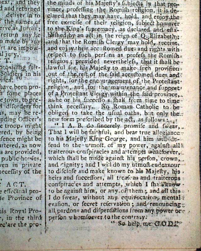 This is very likely the earliest printing of these Acts to be found in any newspaper.