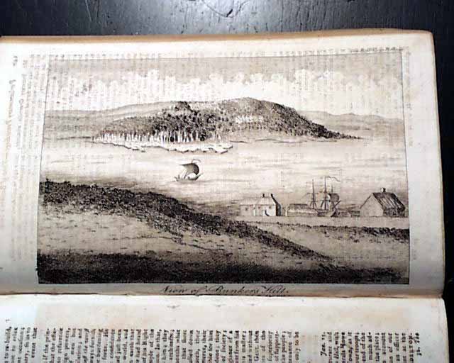 Certainly the prime piece is the very nice, full page engraved plate captioned: "View of Bunker's Hill" which is accompanied by a brief article which includes: "...very accurate & pretty drawing of Bunker's Hill, within the encampments of the Generals Howe and Clinton, and Charles Town, as it appeared after being burnt by our troops...is certainly curious, on account of its being the first situation of our army..." with a bit more.