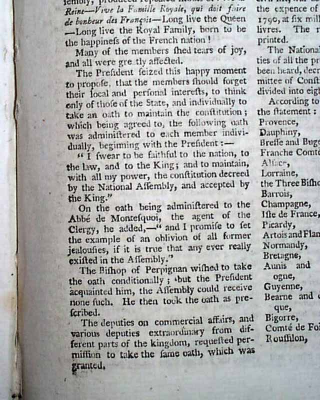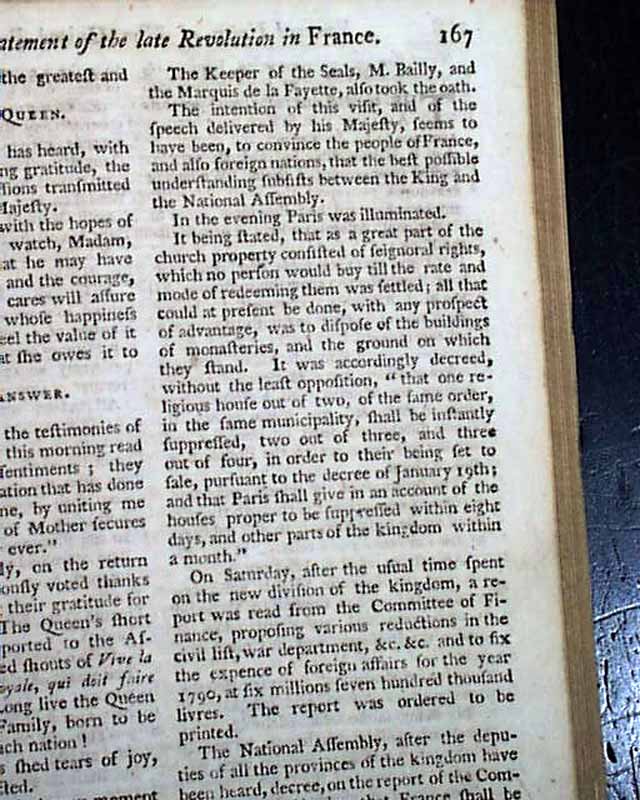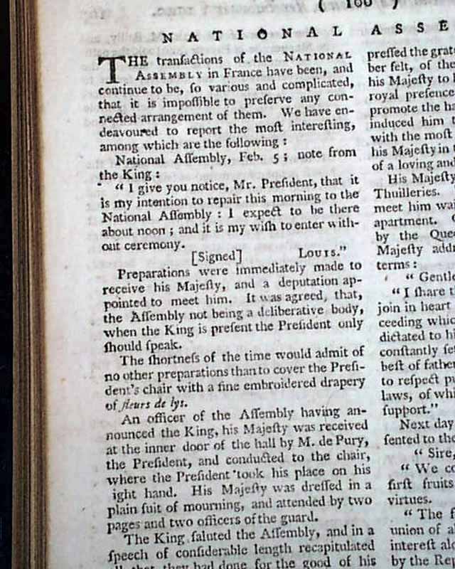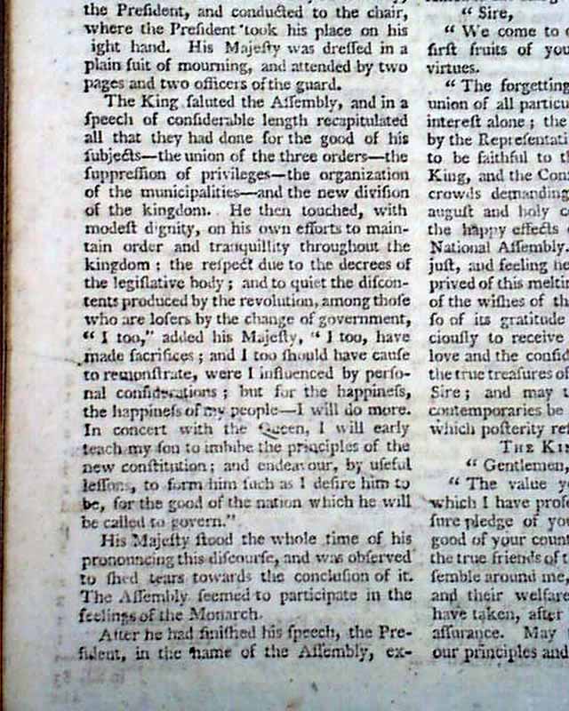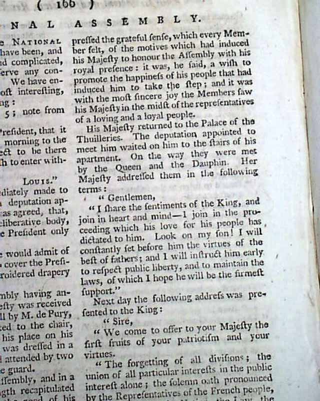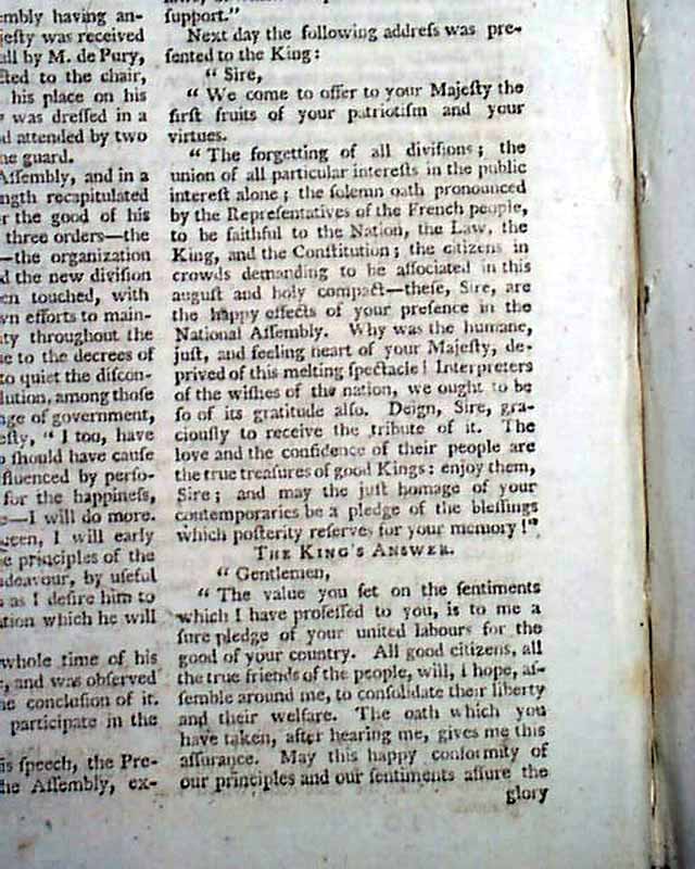 Near the back of the issue are nearly two pages concerning an "Accurate Statement of the Late Revolution in France" which includes a letter signed by the King: Louis, as well as an "Address to the Queen" with "The Queen's Answer". Both Louis XVI and Marie Antoinette would be beheaded by 1793.