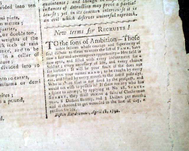 COLUMBIAN CENTINEL, Boston, April 28, 1792 The front page has an Act of Congress concerning the creation of light houses, beacons, buoys & public piers, signed in script type by the President: Go. Washington, and in block type by Th. Jefferson and John Adams. They are to be installed at Charleston, and in the Chesapeake at the north end of Willoughby's Spit, at the tail of the Horse Shoe, and the other in between.