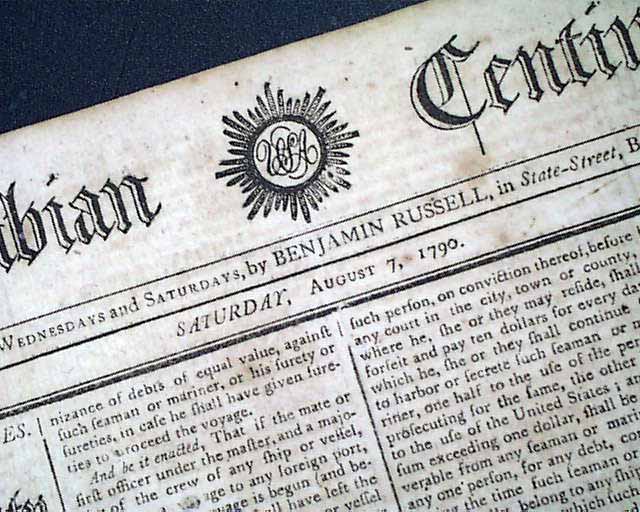 COLUMBIAN CENTINEL, Boston, Aug. 7, 1790