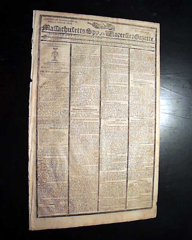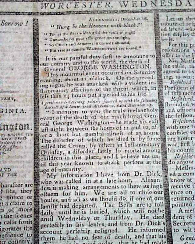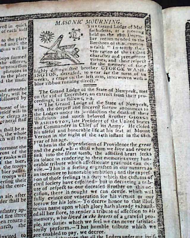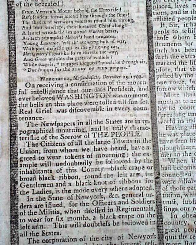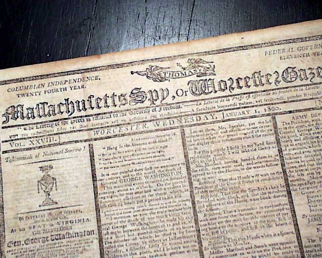 THOMAS'S MASSACHUSETTS SPY OR WORCESTER GAZETTE, January 1, 1800 This is one of the better issues to be had on the death & funeral of George Washington.