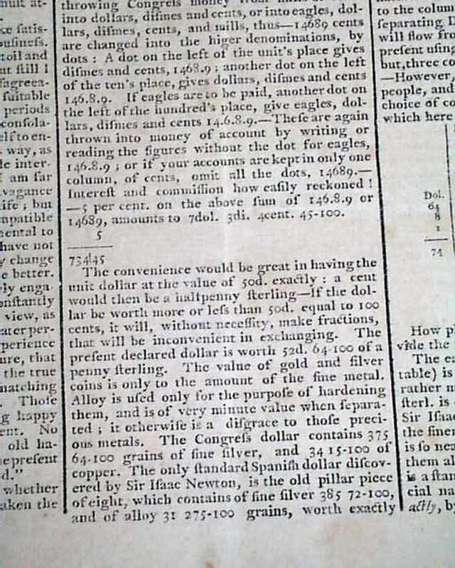 Most of the front page is: "ON the COIN of the UNITED STATES" which is interesting discussion prior to the establishment of the United States Mint. This is formative discussion on how the American currency would be created.