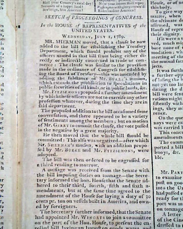 GAZETTE OF THE UNITED STATES, New York, July 4, 1789 This newspaper was the "mouthpiece" of the federal government, certainly evident by the considerable reporting on discussions in Congress from this first year of its existence.