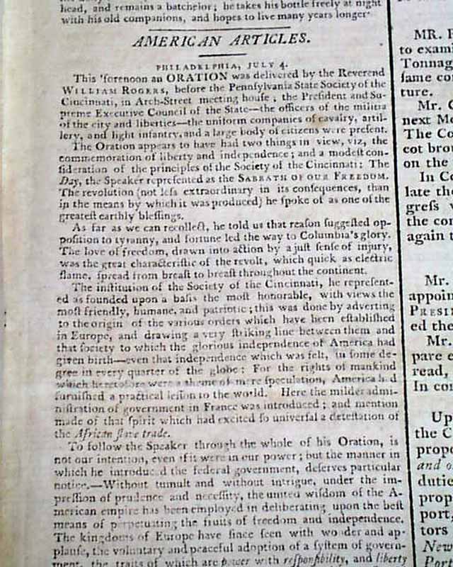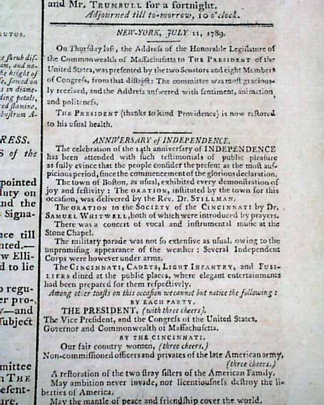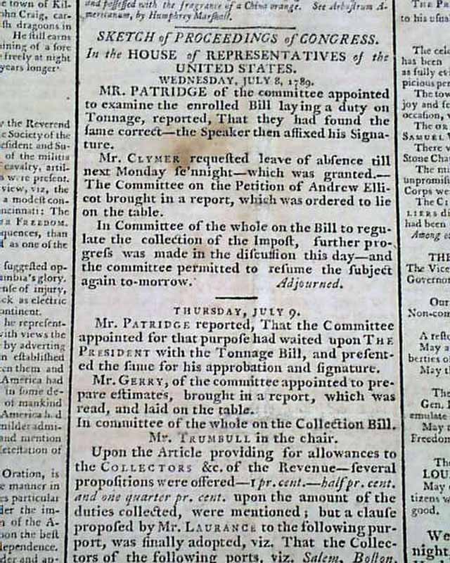 Page 3 has a: "Sketch of Proceedings of Congress" providing some interesting inside into the founding days of our national government. Page 3 also has some mention of the President, & notes that: "...thanks to kind Providence, is now restored to his usual health."