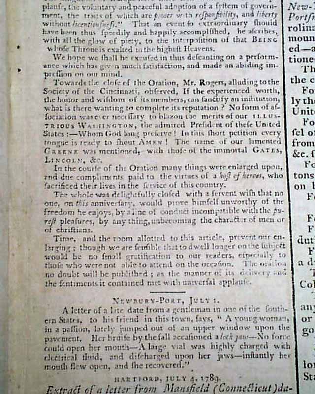 GAZETTE OF THE UNITED STATES, New York, July 11, 1789 Page 2 has much on an oration delivered by the Reverend William Rogers before the Penna. State Society of the Cincinnati, and: "...Towards the close of the oration, Mr. Rogers...observed...to blazon the merits of our illustrious Washington, the admired President of these United States--Whom God long preserve! In this short petition every tongue is ready to shout Amen!..." with a bit more.