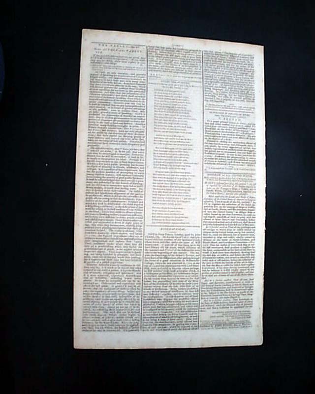 This October 7th Gazette issue is the first newspaper publication, and may be the first publication overall. "The Daily Advertiser" published it on October 8th, as did "The New-York Daily Gazette" and "The New-York Journal and Weekly Register". "The New-York Weekly Museum" published it on the 10th, and "The New-York Packet" on the 15th. (One other newspaper may have been published in New York city at the time, 'The Morning Post, and Daily Advertiser", but no issues are known between September 30 and October 22.)