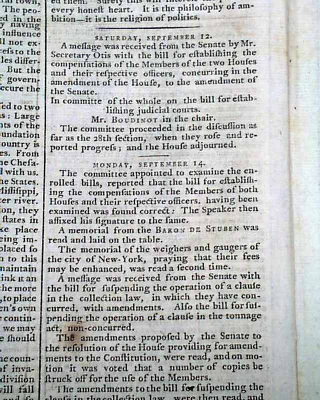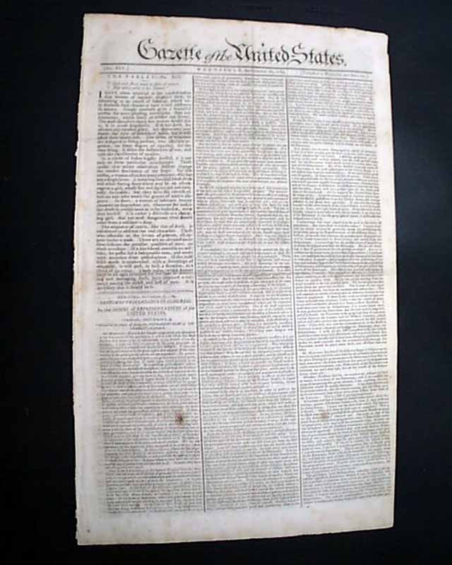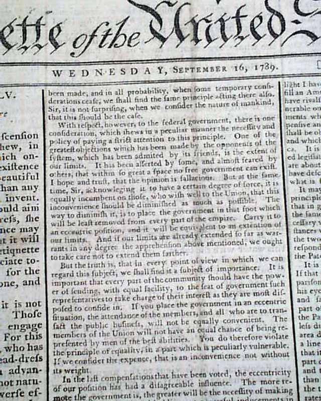 Considered by many as the most significant newspaper of the 18th century, particularly during this, the formative year of the new federal government, as this paper was the mouthpiece of all matters political. Most pronouncements from Congress & the President were printed first in this newspaper.