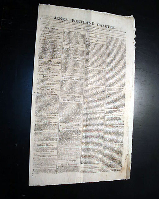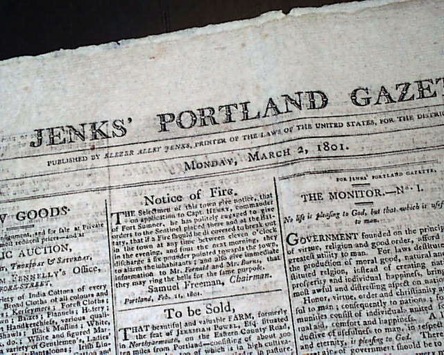 JENKS' PORTLAND GAZETTE, Maine (still part of Mass. at this time), March 2, 1801