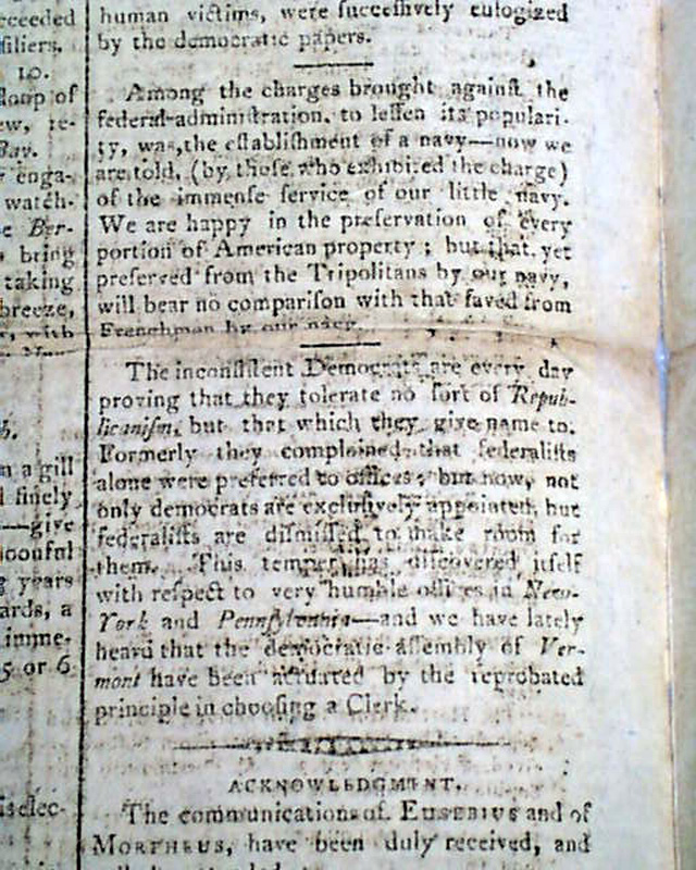 Another article questions the value in establishing a navy, and another item provides a list of: "Naval Commanders".