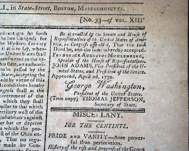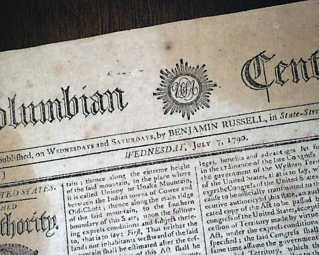 COLUMBIAN CENTINEL, Boston, July 7, 1790