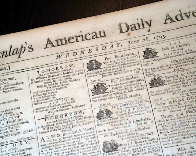 DUNLAP'S AMERICAN DAILY ADVERTISER, Philadelphia, June 26, 1793