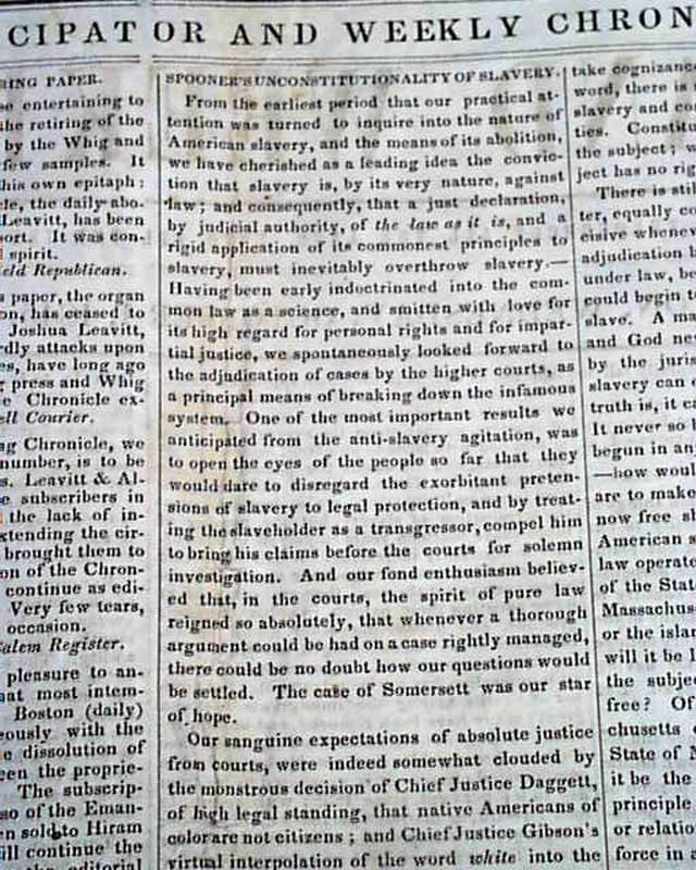 This abolitionist newspaper was first published in New York City and by this time in Boston. It was founded as the official newspaper of the American Anti-Slavery Society, and from 1840 to 1850 it was published by the Liberty Party.