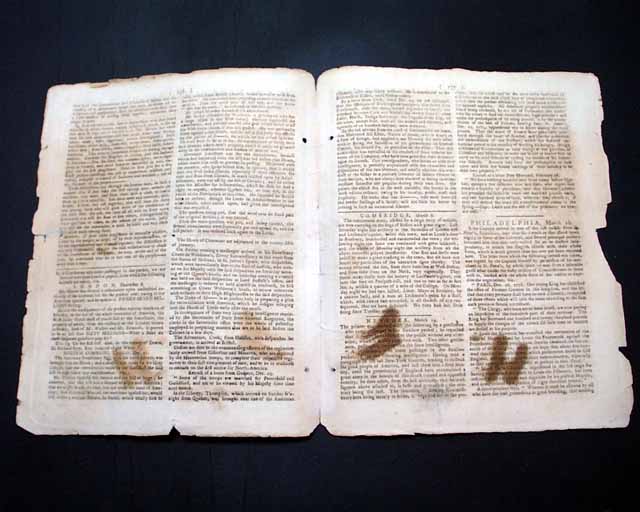 A page 2 item from the House of Commons includes: "The American Prohibitory bill...was brought into the House...that this bill was a farewell to peace and America; that we might bruise the heel, but not crush the head of America; that America, after all our exertions against her, would still revive; whereas Britain, he feared, would totally sink to ruin...".