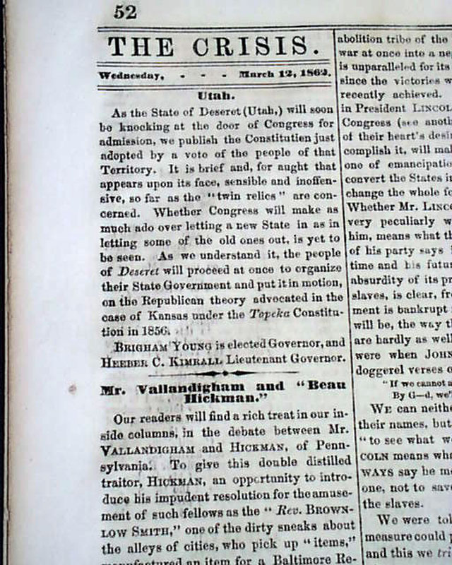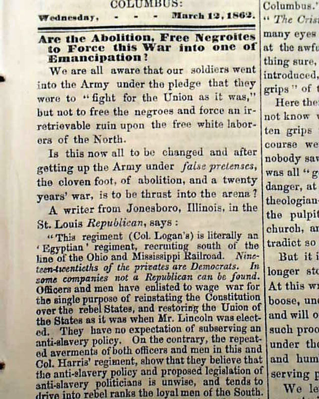 THE CRISIS, Columbus, Ohio, March 12, 1862