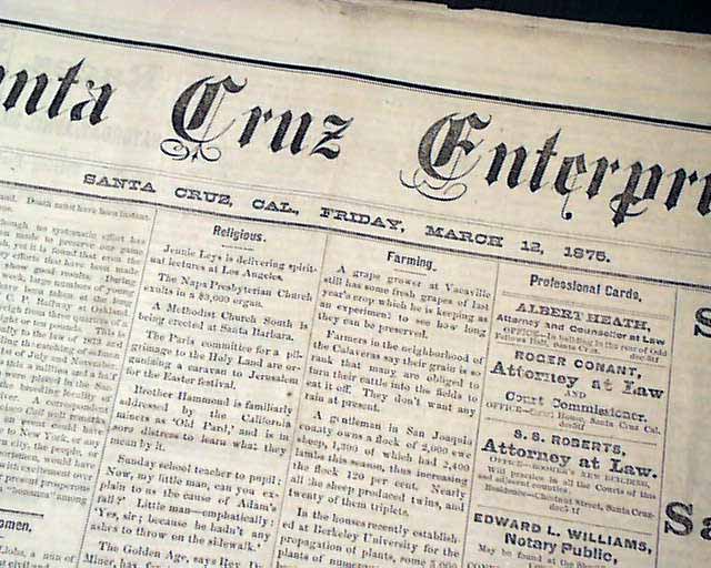 SANTA CRUZ ENTERPRISE, California, March 13, 1875