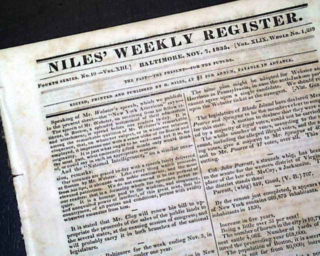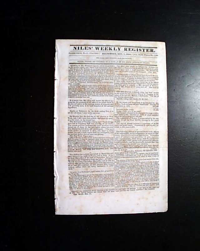 NILES' WEEKLY REGISTER, Baltimore, Nov. 7, 1835 Inside has 2 1/2 pages of news under the heading: "Texas" concerning events from the beginning of their war for independence. The reports seem to reference the Battle of Gonzales (first battle of the Texas war for independence) but there is no direct mention of it.