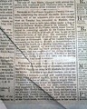 Complete in four pages, never bound nor trimmed, ragged at the right margins but affecting only ads and blank margin, some wrinkling and light browning.