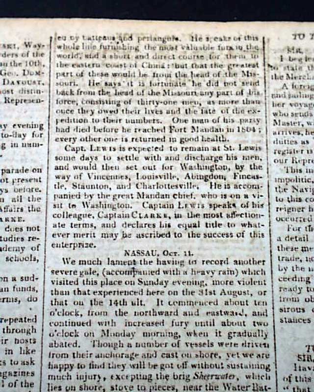 THE TIMES, London, England, Dec. 3, 1806 Page 3 includes a report from Washington beginning: "It is with the sincerest pleasure that we announce to our fellow citizens the arrival of Capt. Lewis with his exploring party, at St. Louis...President of the United States has received a letter from him dated at St. Louis...at which placed himself, Capt. Clarke, and their party arrived..." with much more on their travels.