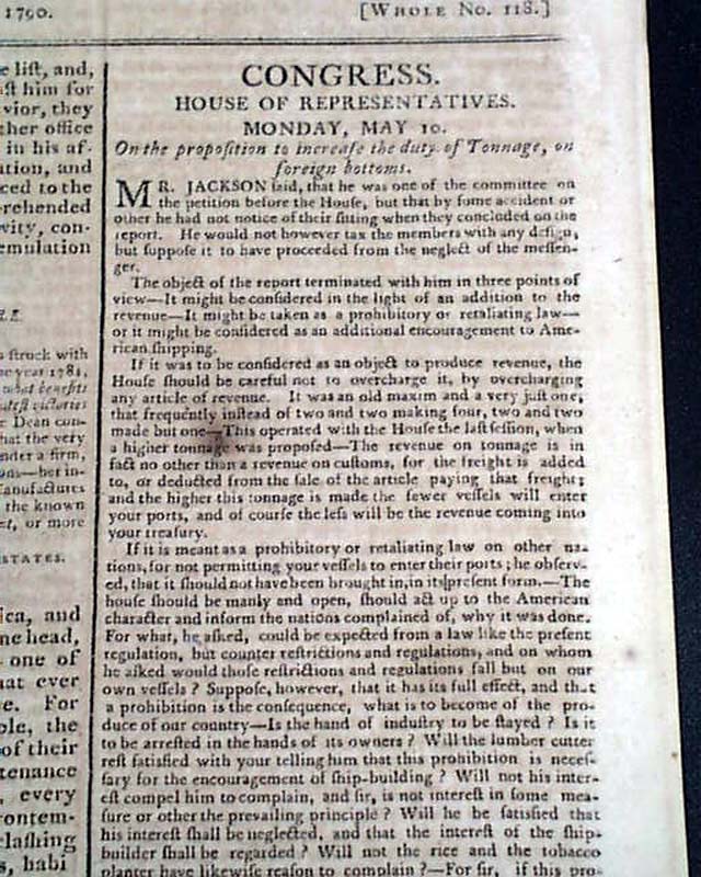 Beginning on the front page and taking all of page 2 & most of page 3 are discussions from Congress during this formative year. The back page has some details about the will of Benjamin Franklin which provides some interesting information.