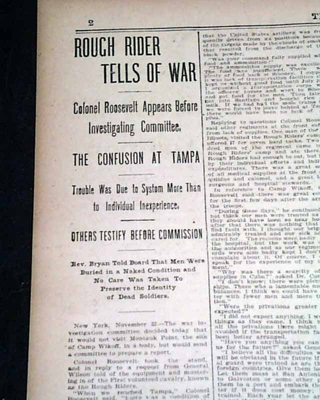 Spanish-American War content also, carrying over to page 2 where is mention of Teddy Roosevelt & the Rough Riders testifying.