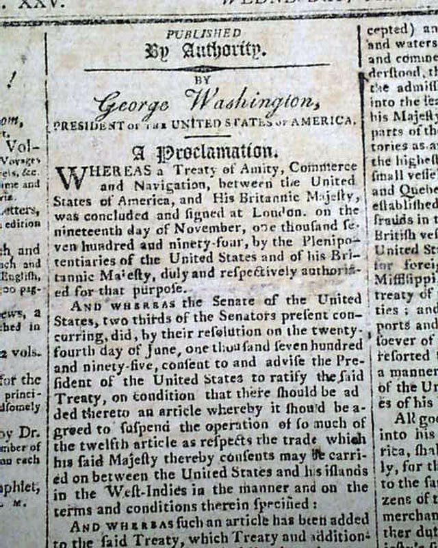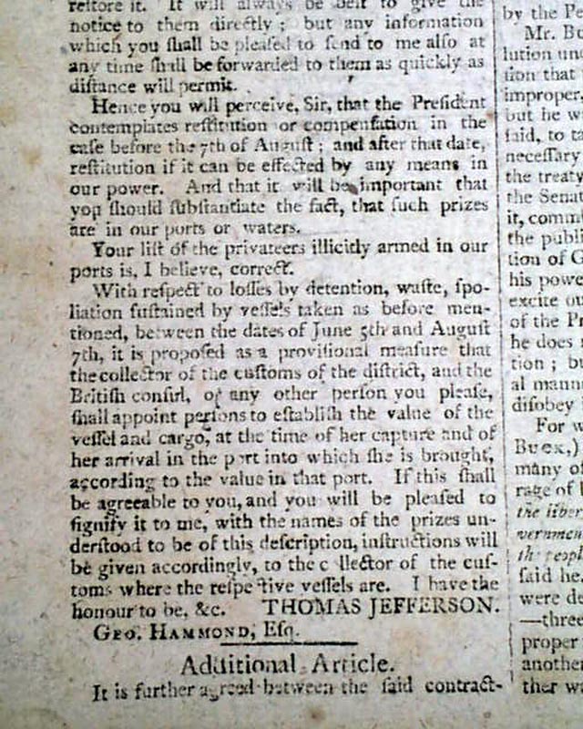 A very significant pair of issues as they contain, in its entirety, the full text of the Jay Treaty, one of the more significant 18th century documents in American history.