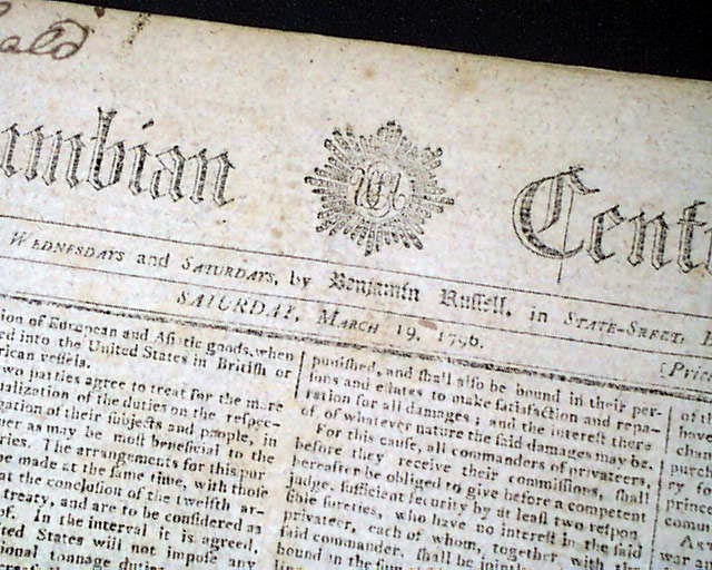 COLUMBIAN CENTINEL, Boston, March 16 & 19, 1796