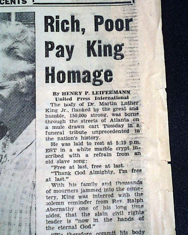 Funeral of Martin Luther King, Jr. in an African-American newspaper...